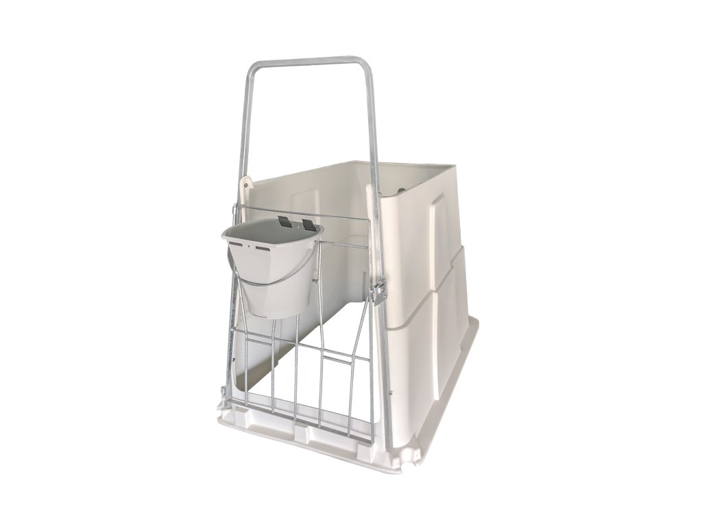 Tento model je určen k umístění ve stáji (např. porodna, teletník). Přední dvířka umožňují krmení telat pomocí kyblíku na mléko s cucákem a zároveň nabízejí možnost instalace dvou držáků na kyblíky. Volitelně lze kotec doplnit o držák na UV lampu.
